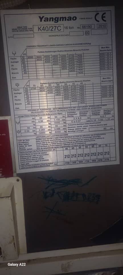 هر تاورکرین یا جرثقیل سقفی ظرفیت مشخصی برای حمل بار دارد. همچنین، ارتفاع کاری نیز از عوامل تعیینکننده است. برای مثال: