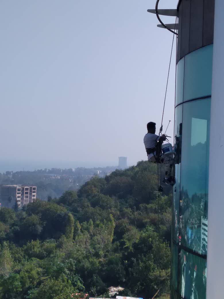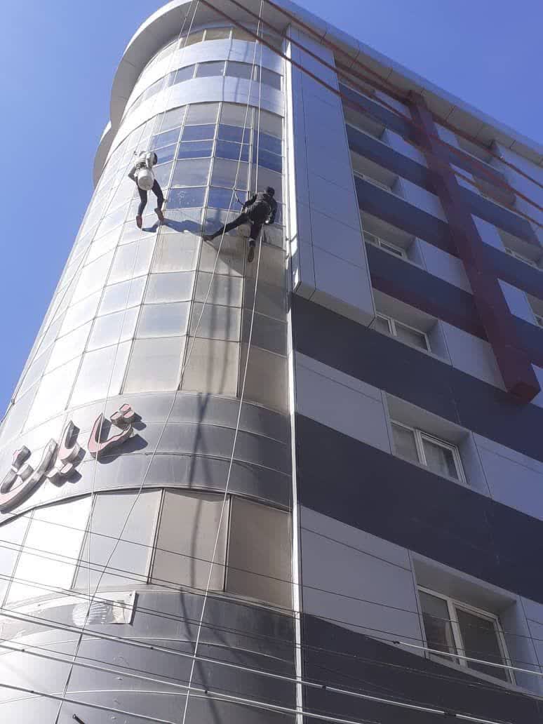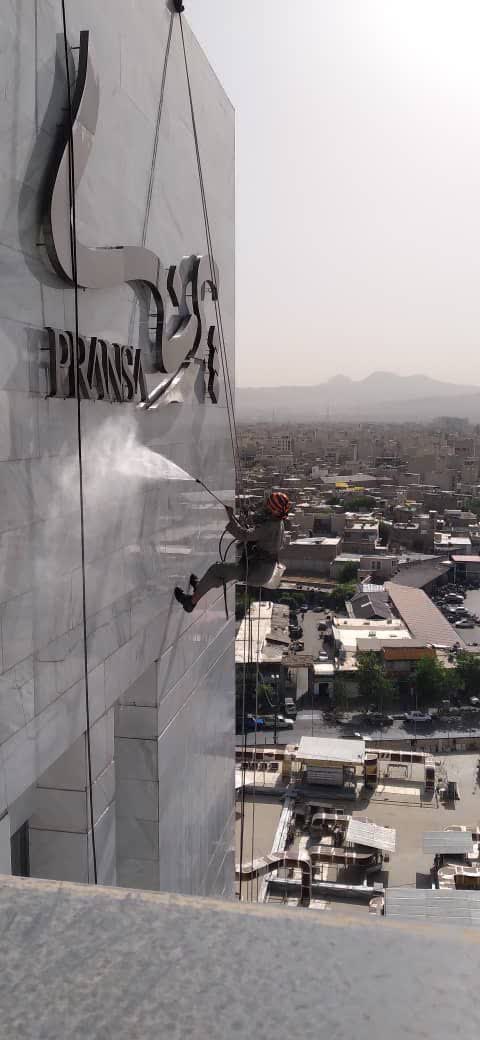 کلیه خدمات کار در ارتفاع، شامل پیچ و رولپلاک نما و نصب سنگ نماشویی با واترجت نور پردازی اجرای عایق رطوبتی پشت بام و نما بدون نیاز به داربست دارای بیمه و ضمانت