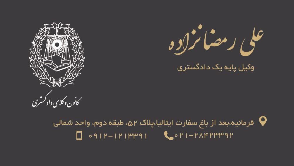 علی رمضانزاده وکیل پایه یک دادگستری وکالت در امور اراضی و املاک داوری شرکتها بانکی مطالبات پیمانکاری در تهران فرمانیه
